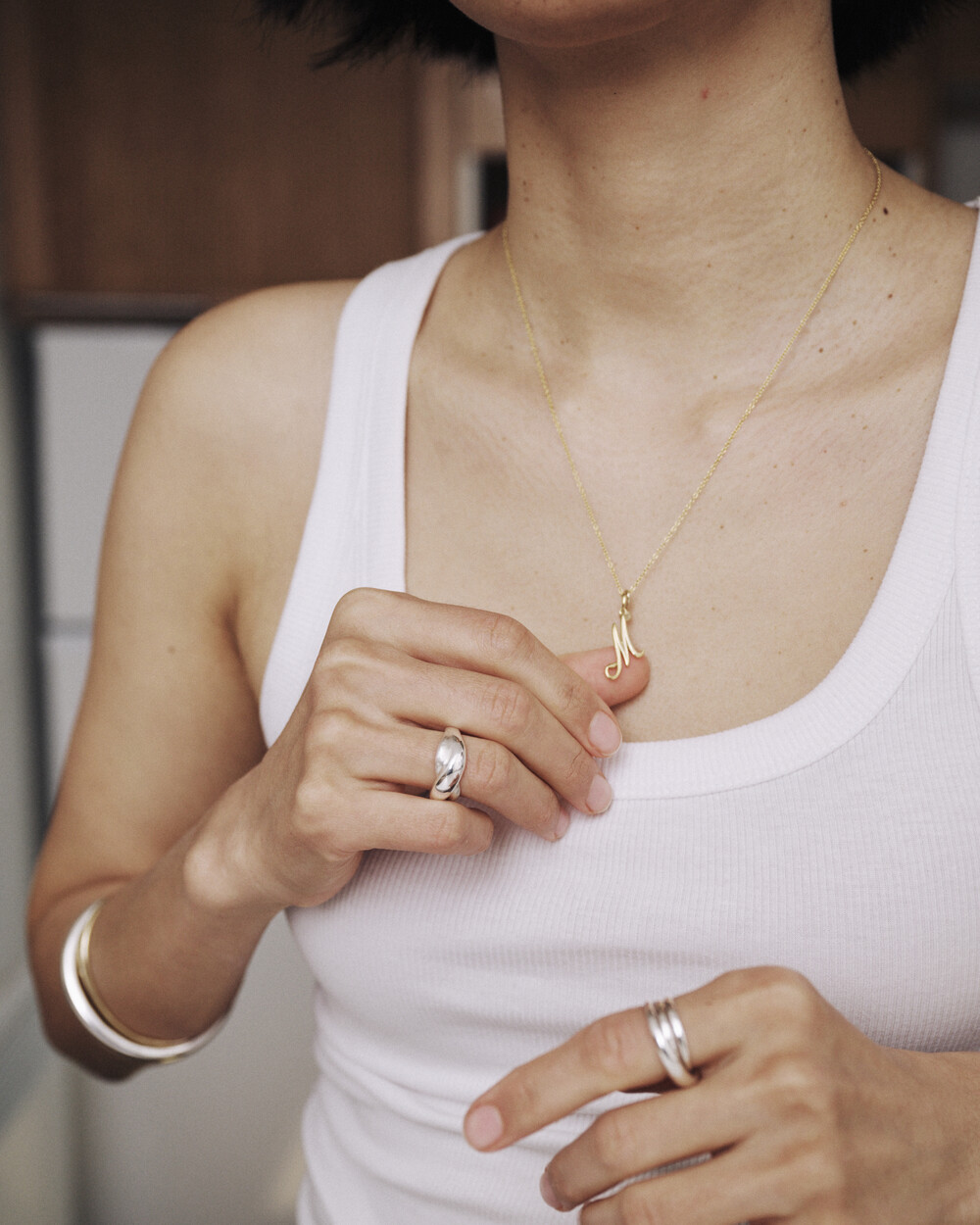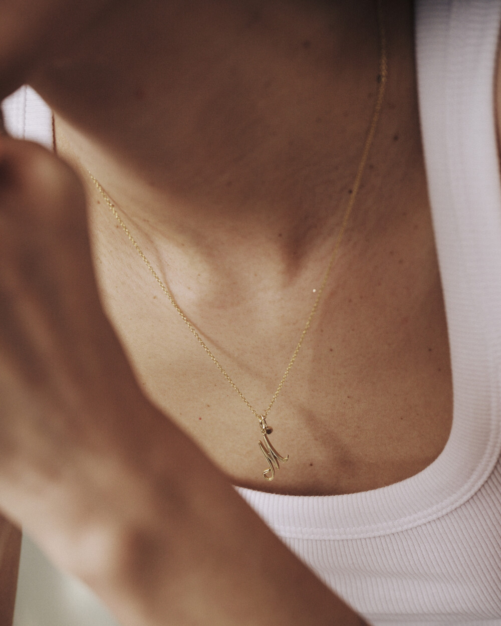 유려하게 흐르는 필기체 라인을 담아낸 14K 이니셜 펜던트입니다.