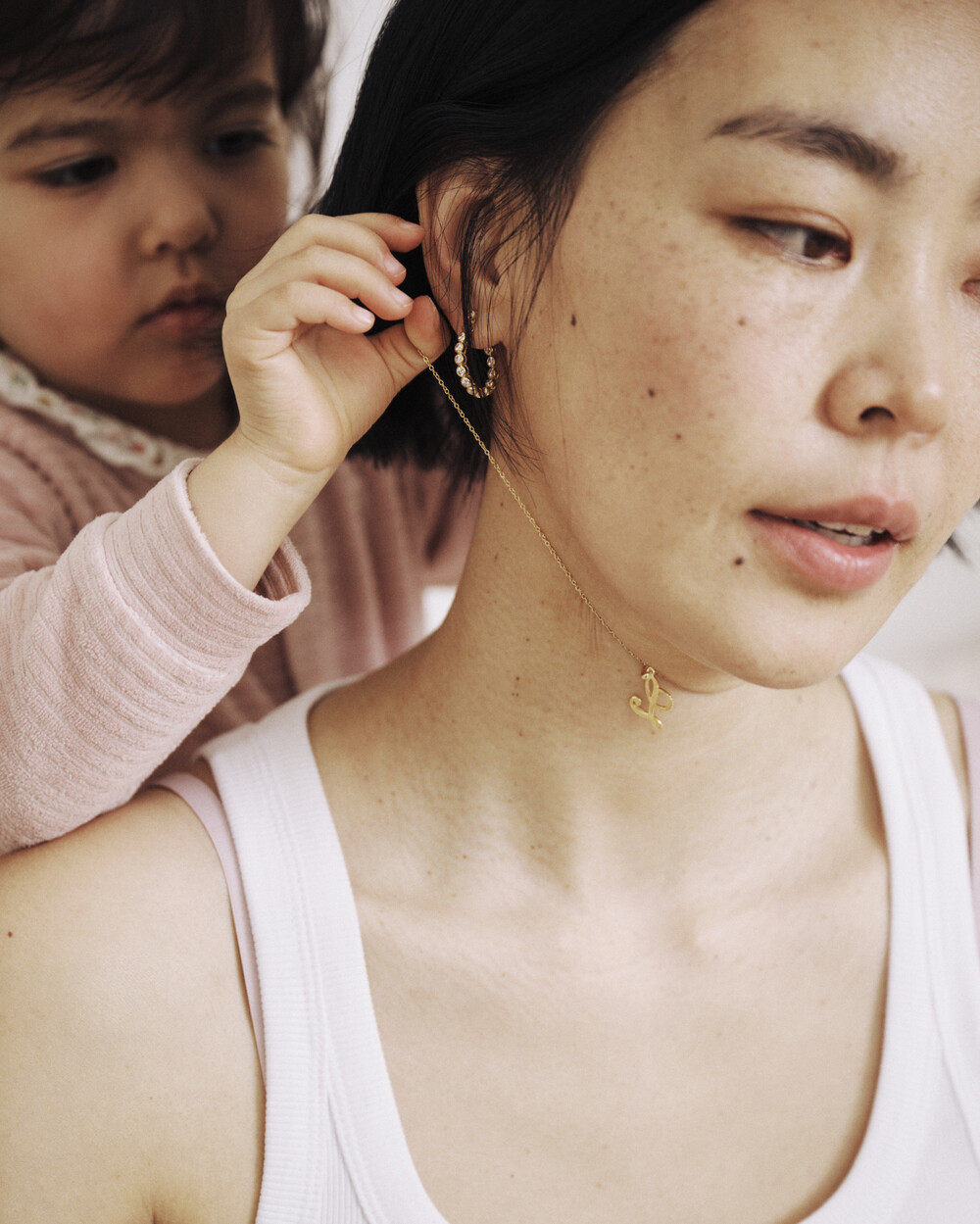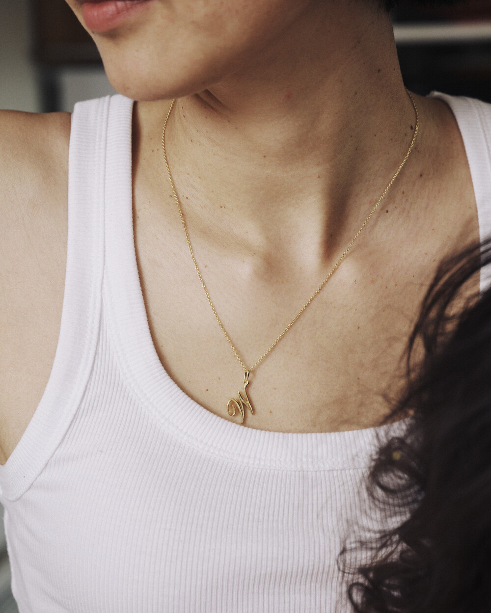 유려하게 흐르는 필기체 라인을 담아낸 14K 이니셜 펜던트입니다.