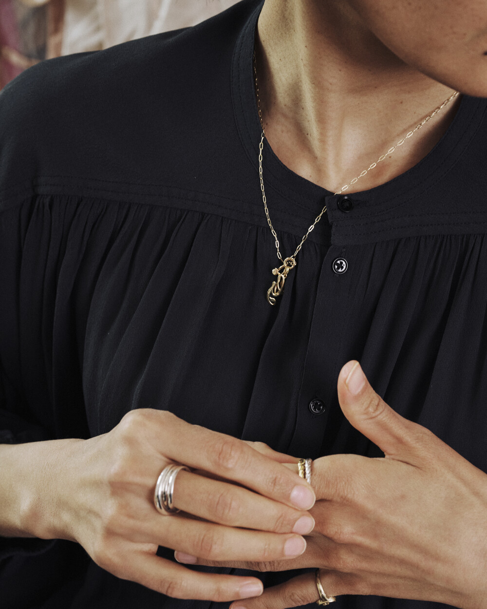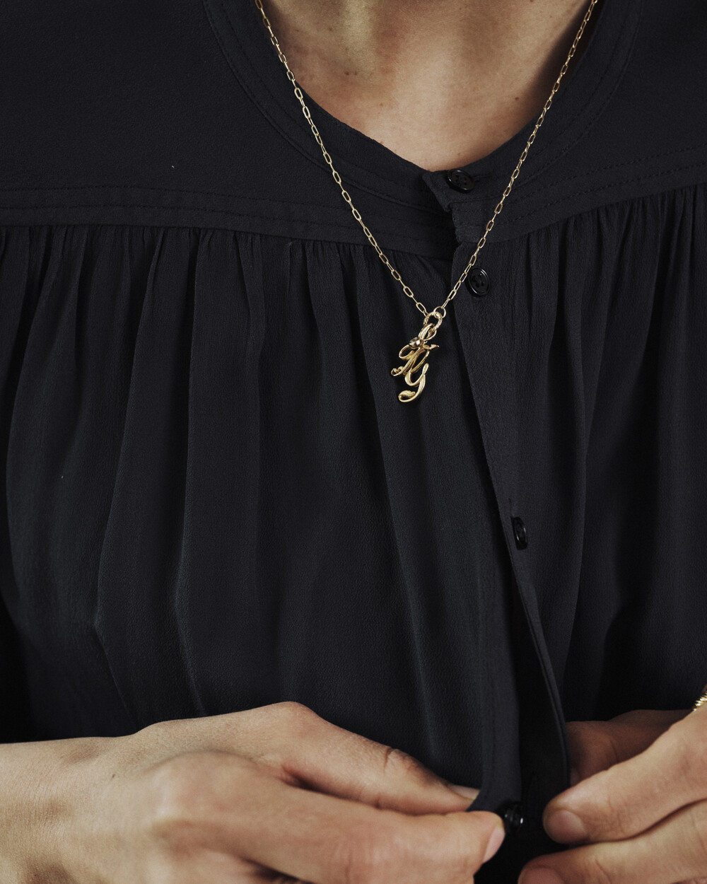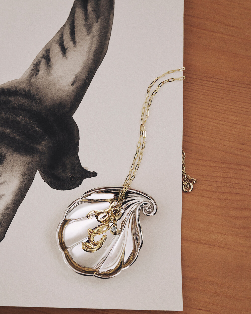 유려하게 흐르는 필기체 라인을 담아낸 14K 이니셜 펜던트입니다.