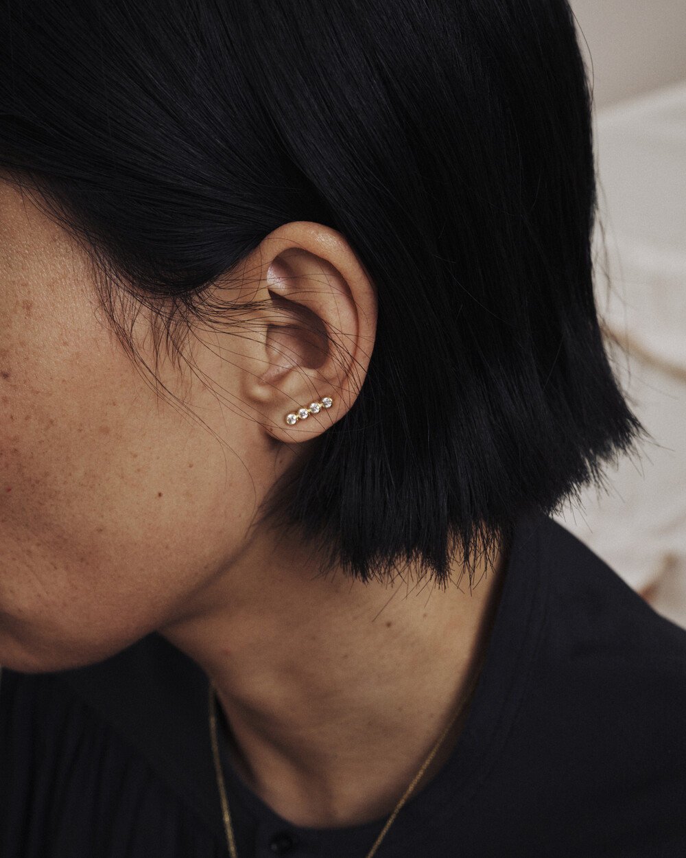 베즐 세팅된 모이사나이트가 직선으로 깔끔하게 이어지는 스터드 이어링입니다.