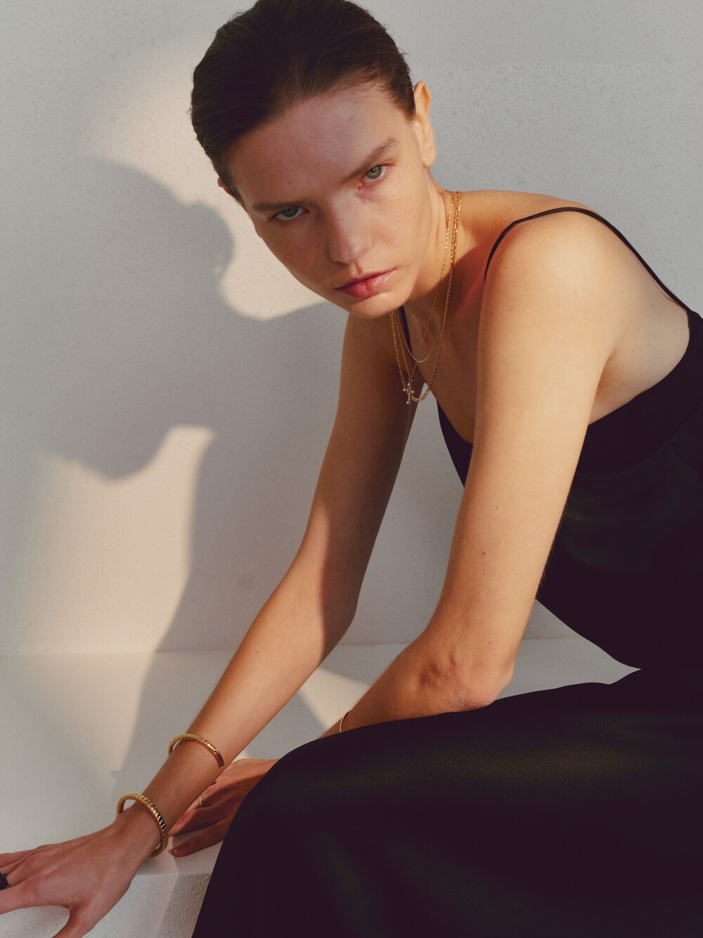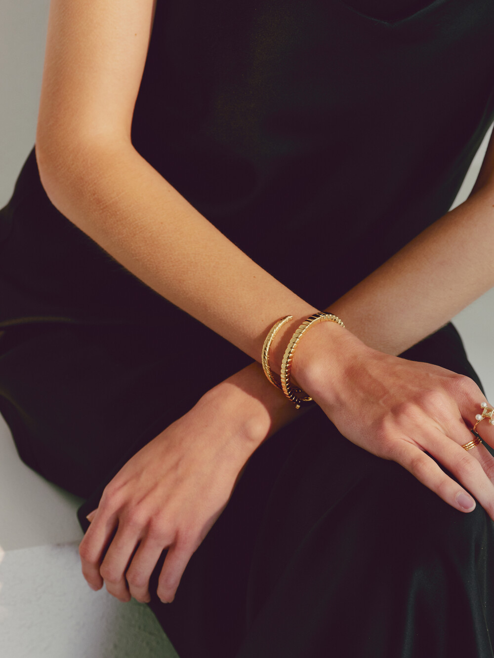 섬세하게 도금된 골드 컬러가 손목에 따뜻한 빛을 더하며, 절제된 디자인 속에서 우아한 존재감을 드러냅니다.