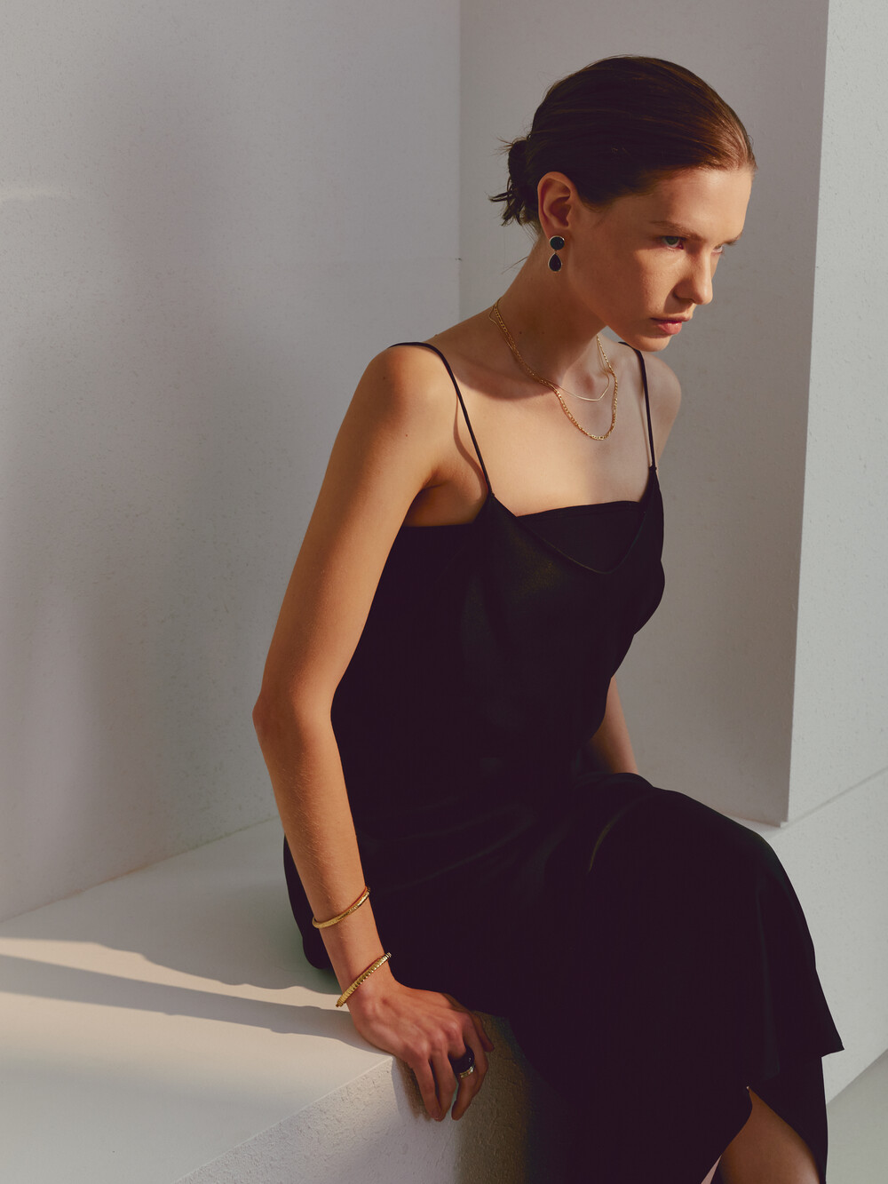 정교하게 이어진 라운드 라인이 유연하게 감기며, 데일리 착용은 물론 포멀한 스타일에도 자연스럽게 어우러집니다.