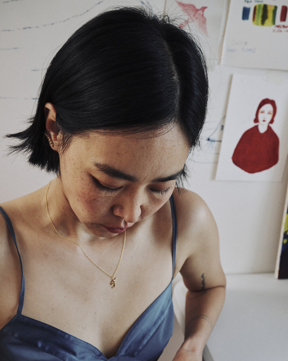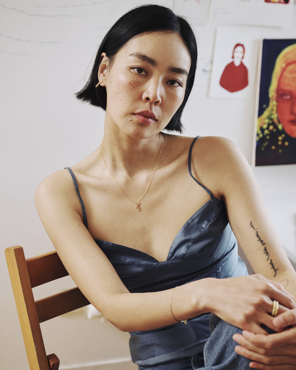 유려하게 흐르는 필기체 라인을 담아낸 14K 이니셜 펜던트입니다.