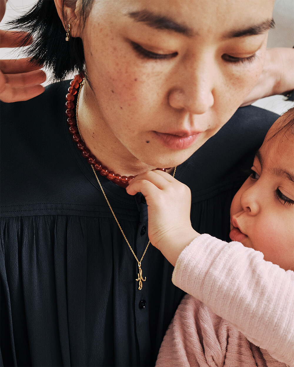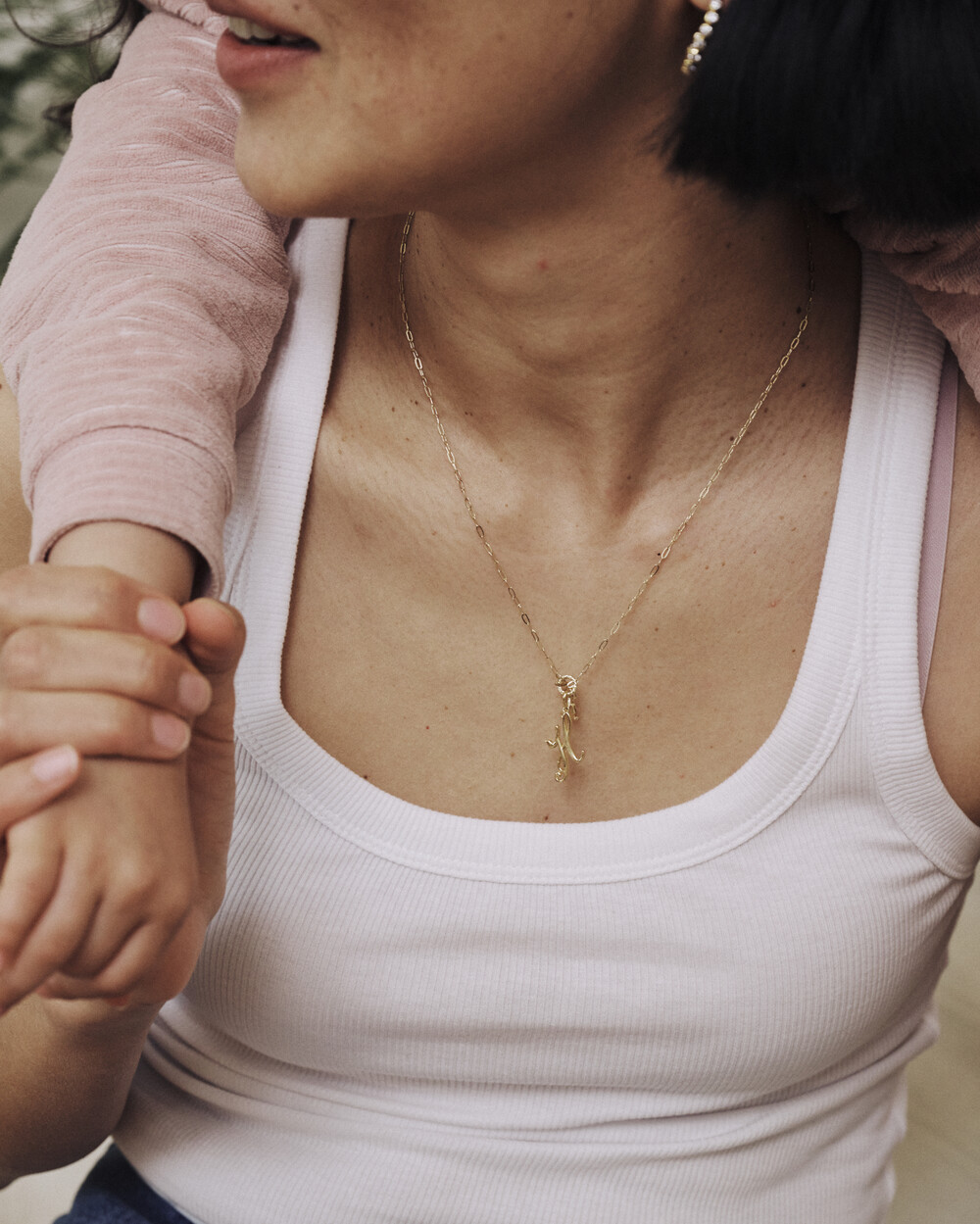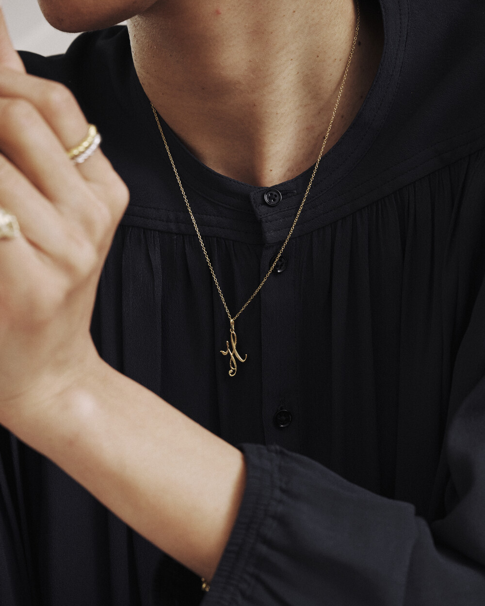 유려하게 흐르는 필기체 라인을 담아낸 14K 이니셜 펜던트입니다.