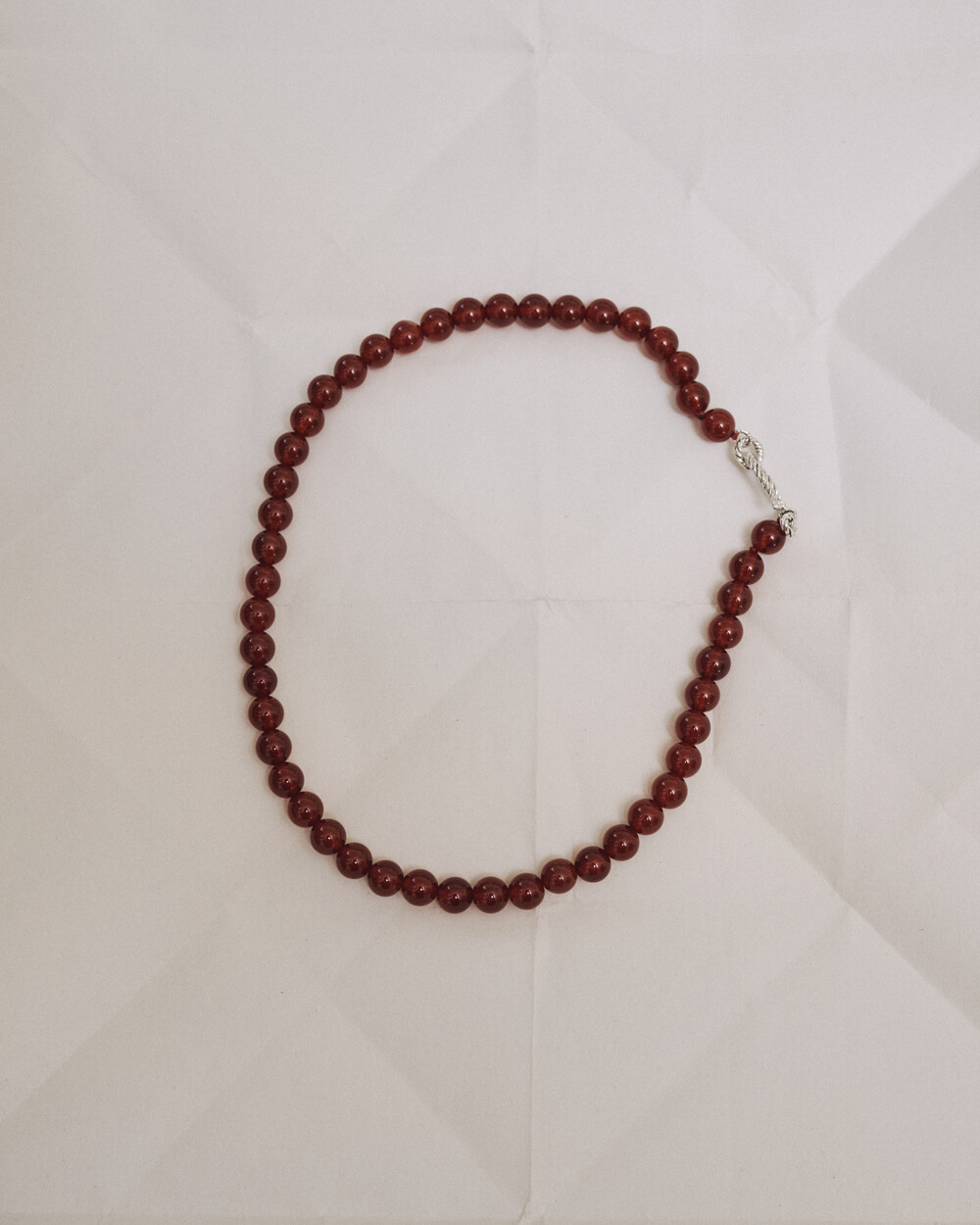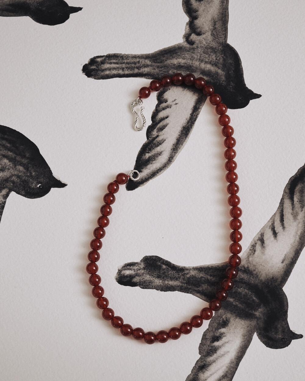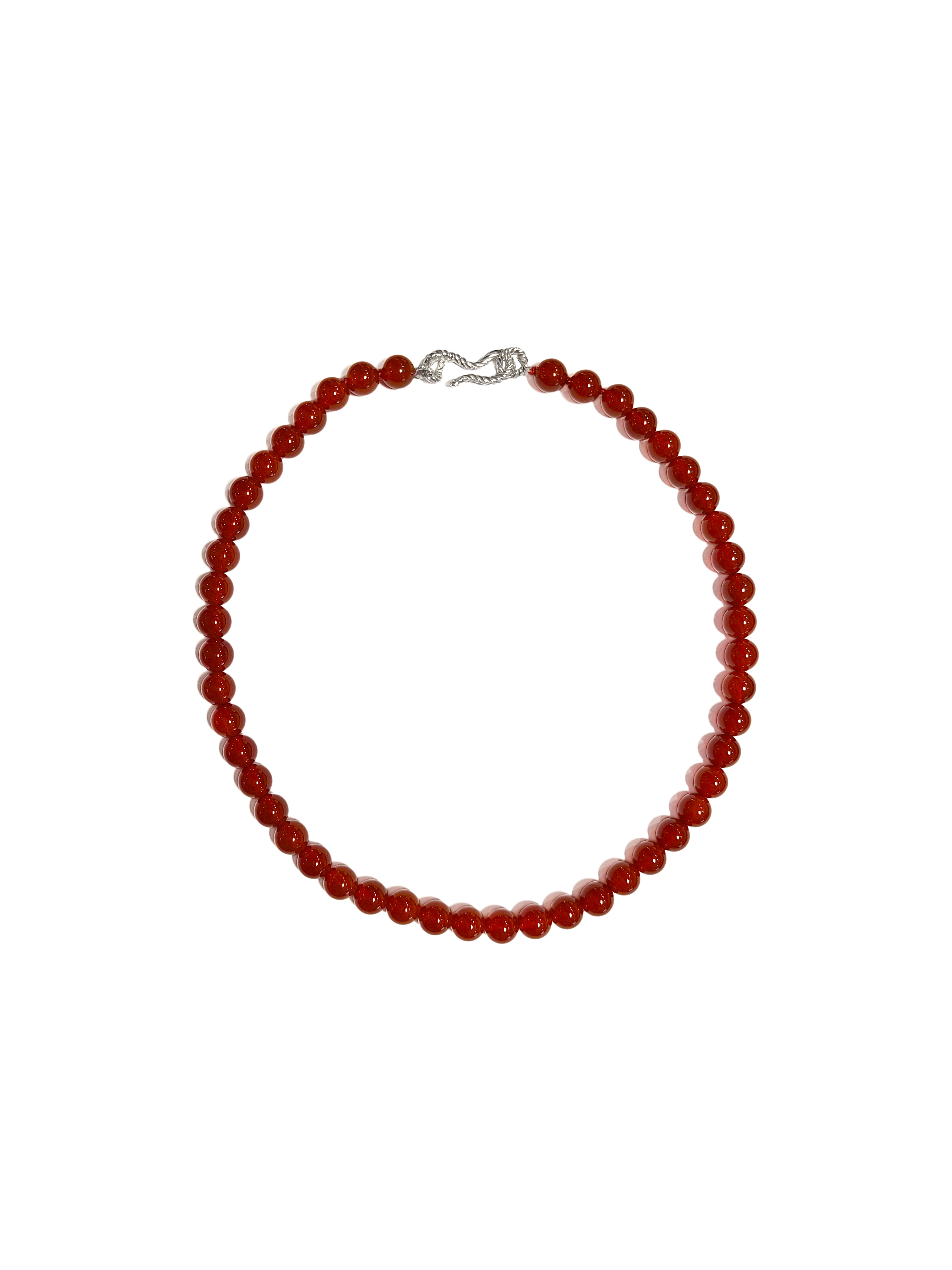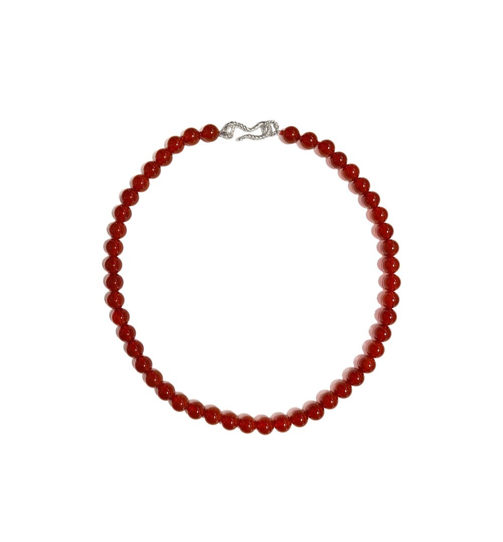 따뜻한 레드 톤의 8mm 아게이트가 부드럽게 이어지는 비드 네크리스입니다.