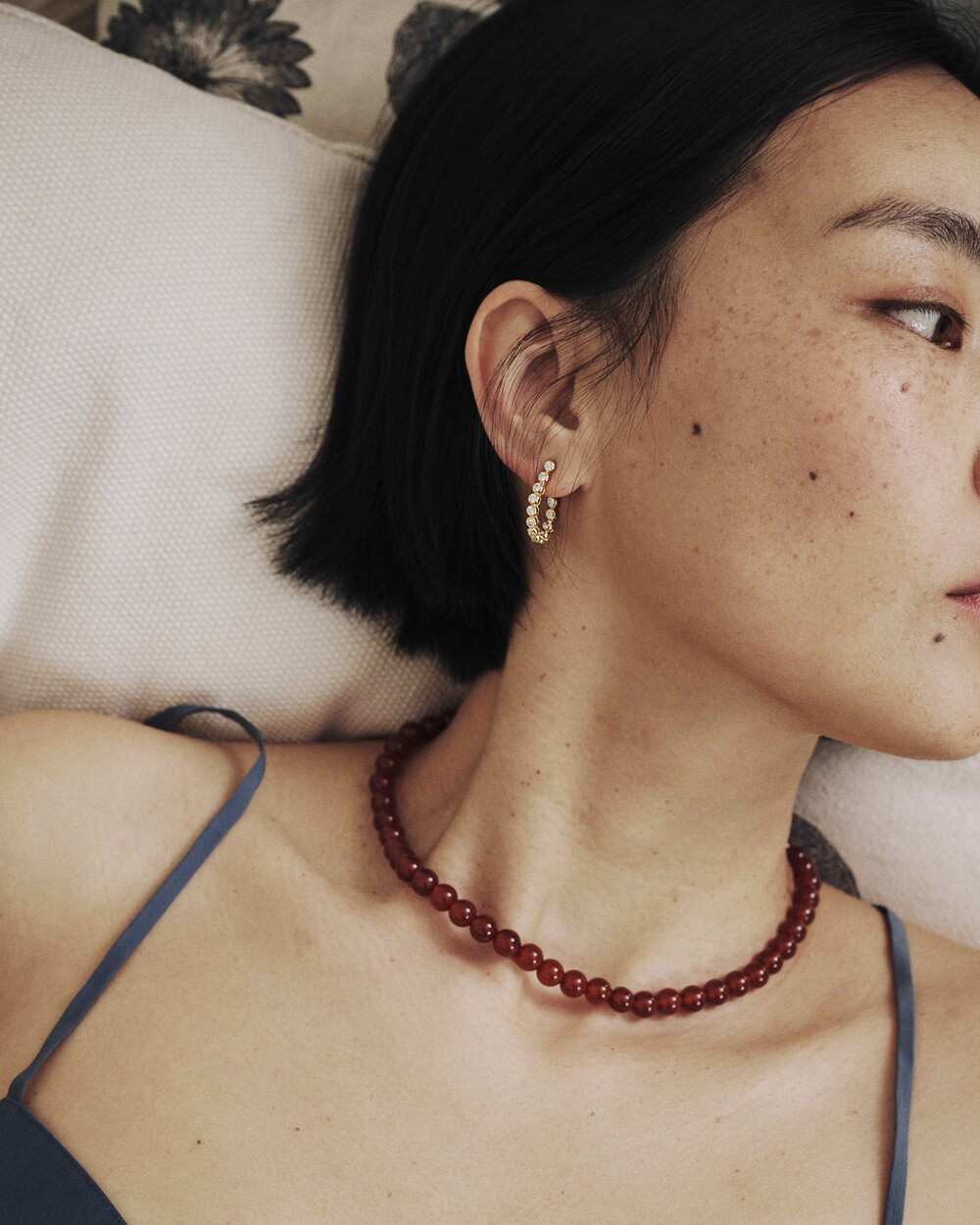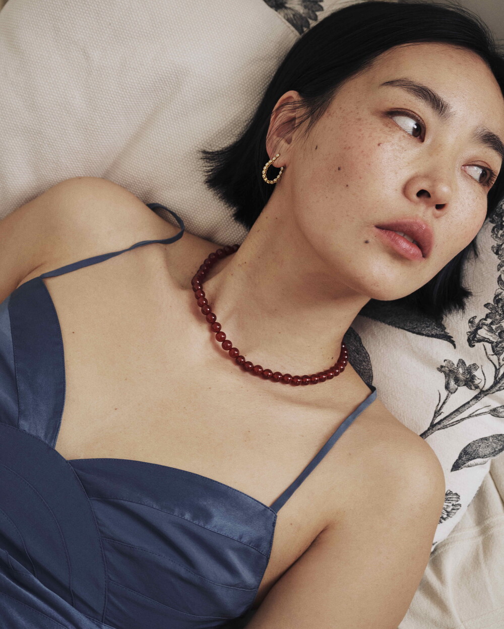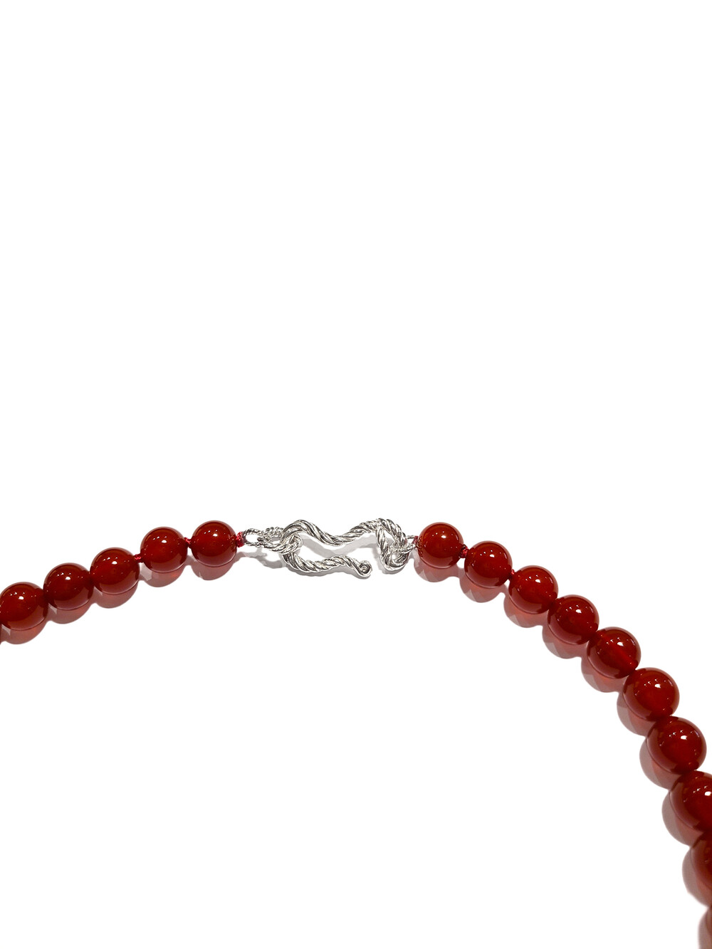 따뜻한 레드 톤의 8mm 아게이트가 부드럽게 이어지는 비드 네크리스입니다.
