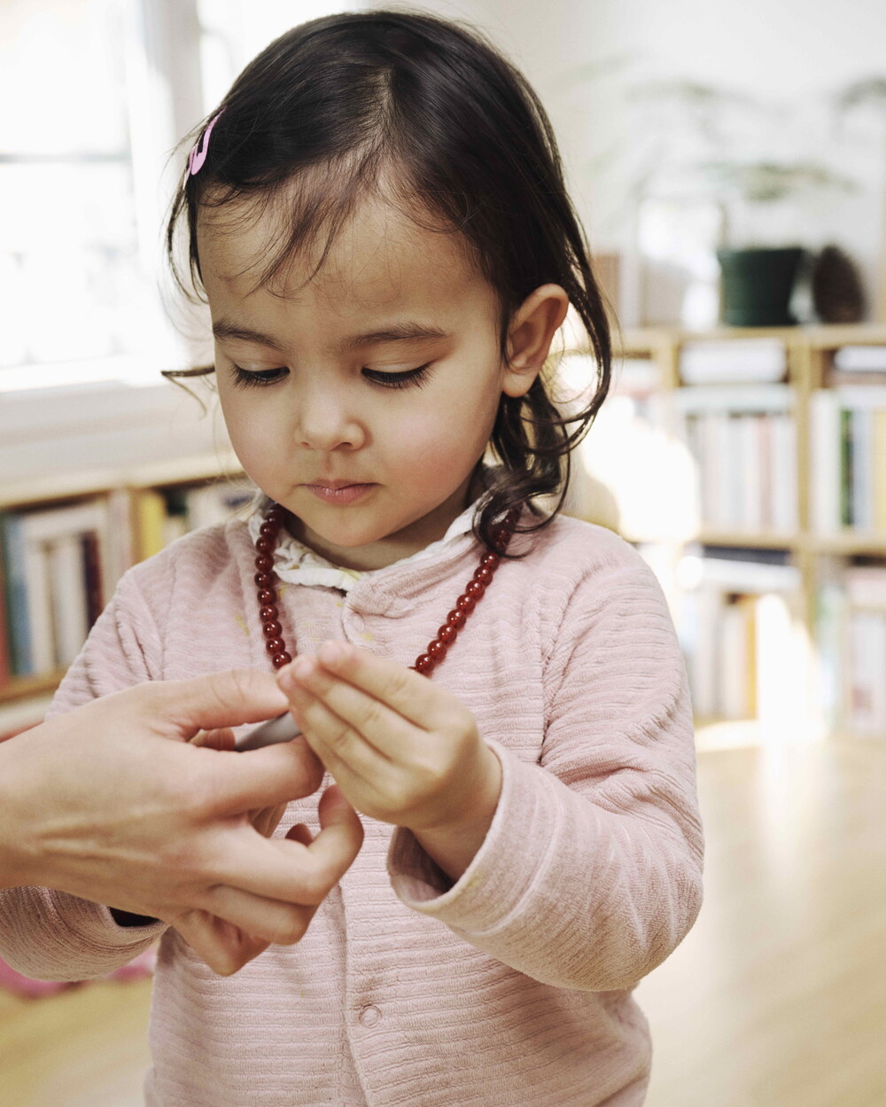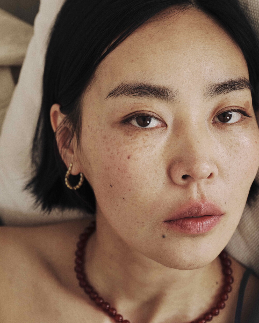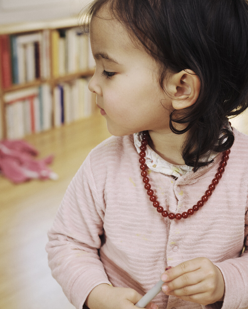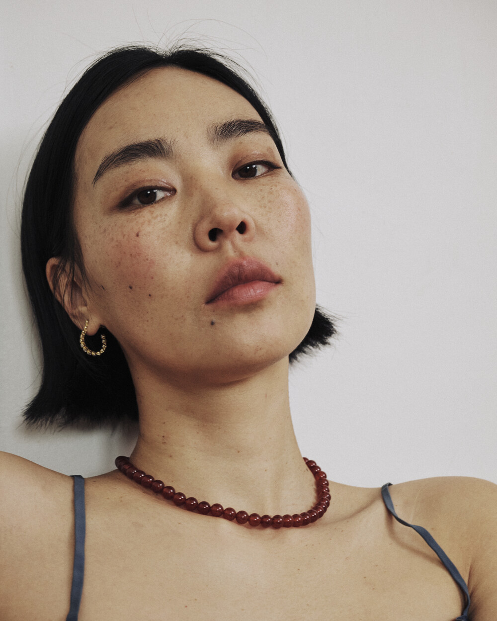 따뜻한 레드 톤의 8mm 아게이트가 부드럽게 이어지는 비드 네크리스입니다.