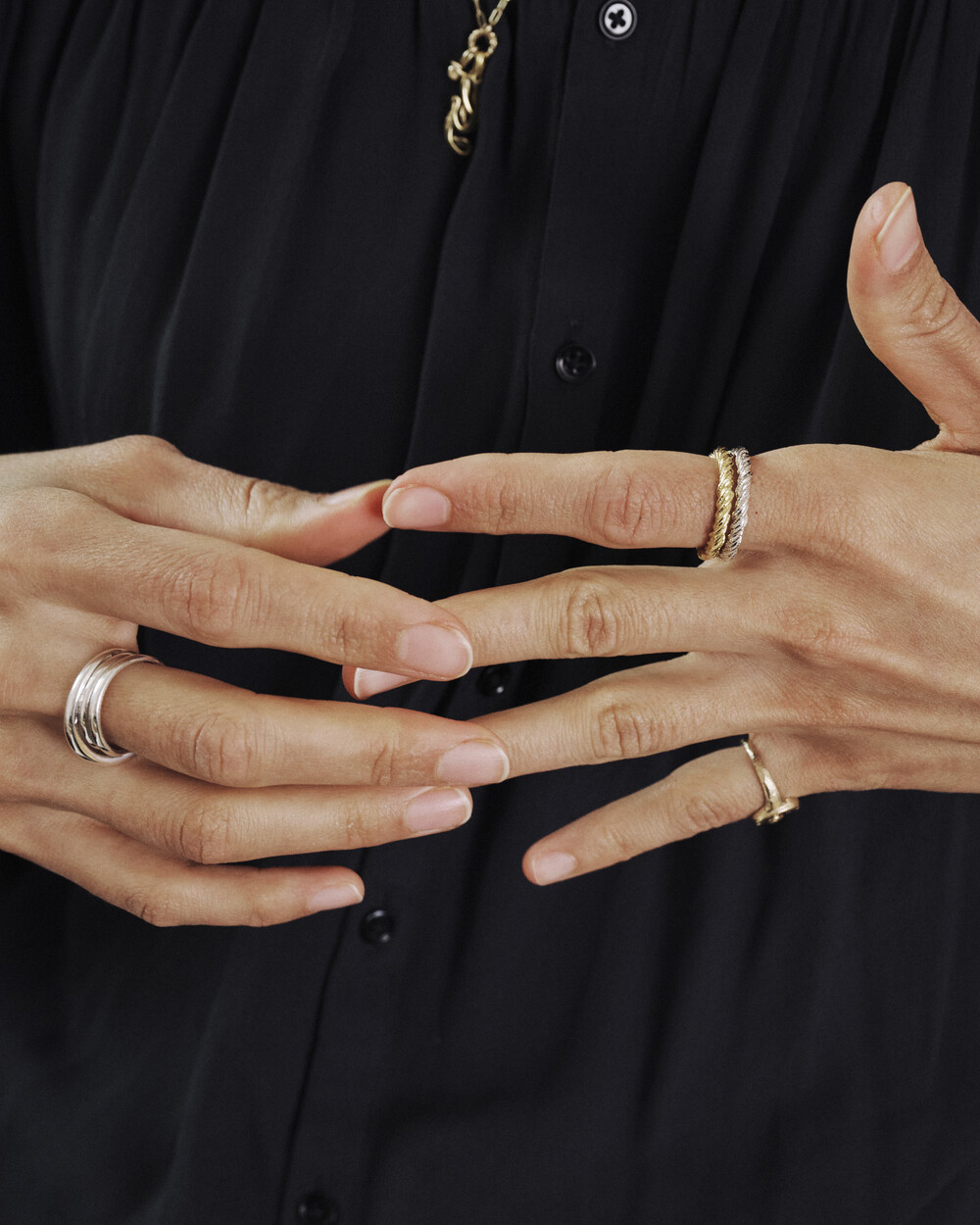 유려하게 흐르는 곡선과 레이어드된 구조가 손끝에 부드러운 리듬감과 입체적인 실루엣을 더해줍니다.