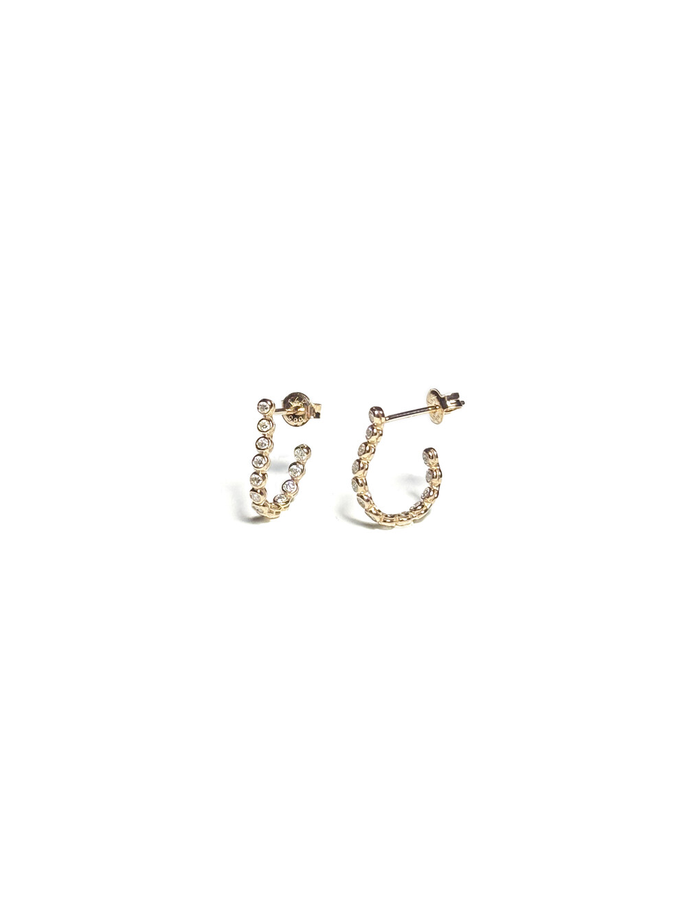 베즐 세팅된 모이사나이트가 부드러운 곡선을 따라 이어지는 스터드 이어링입니다.