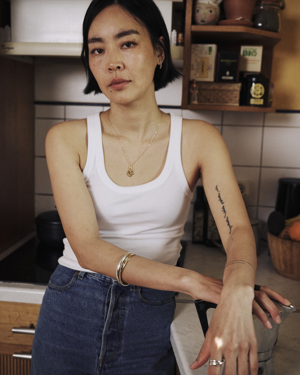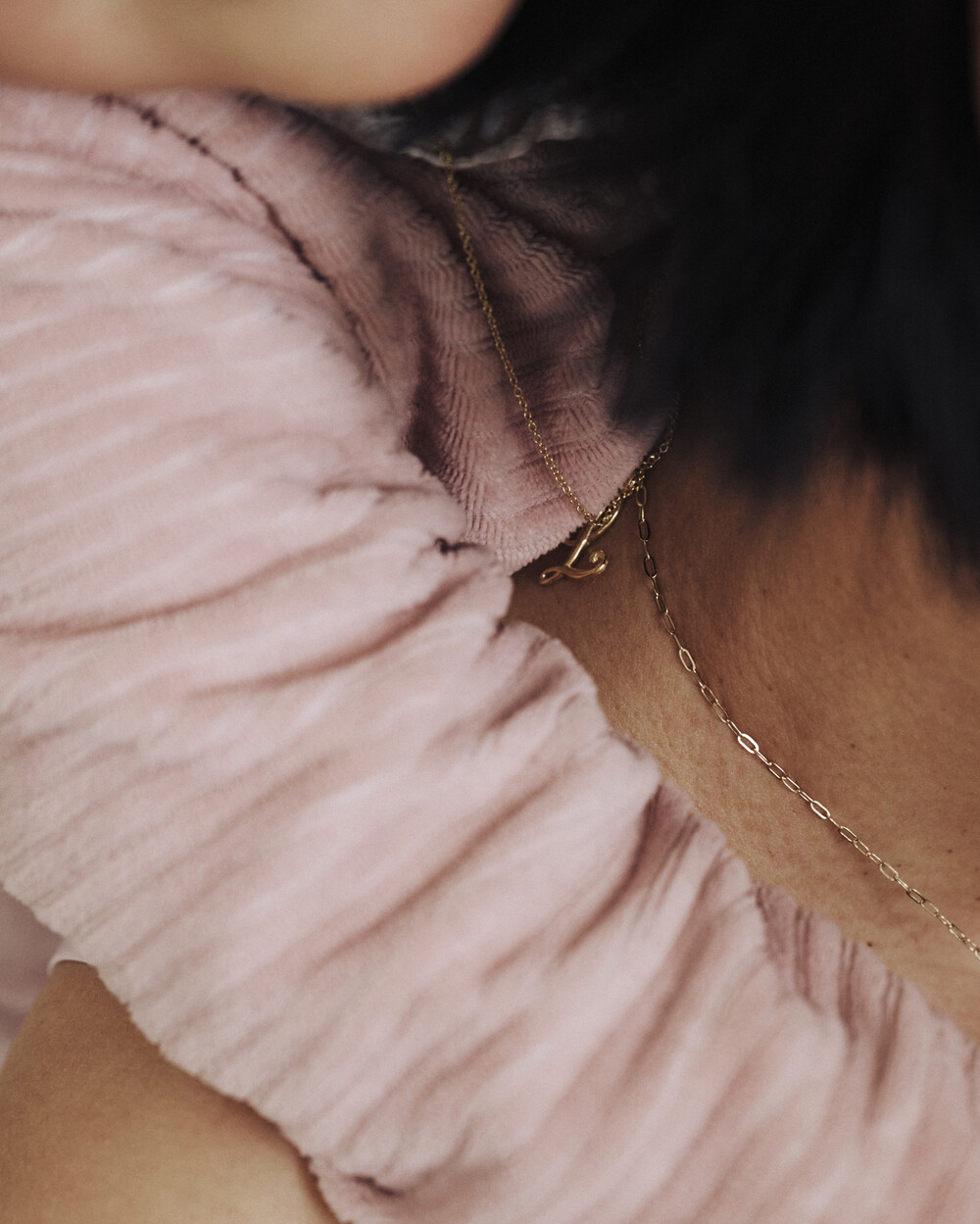 유려하게 흐르는 필기체 라인을 담아낸 14K 이니셜 펜던트입니다.