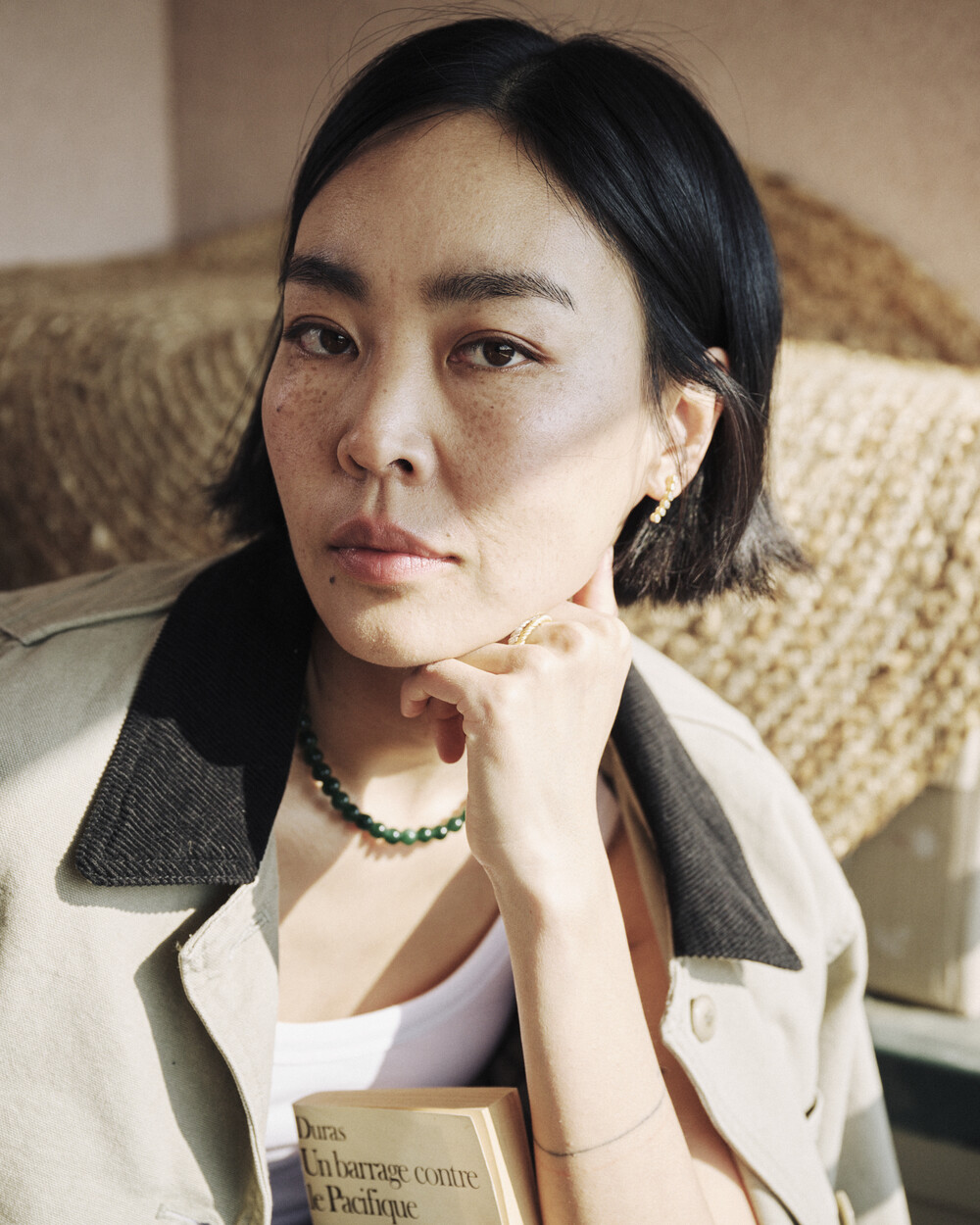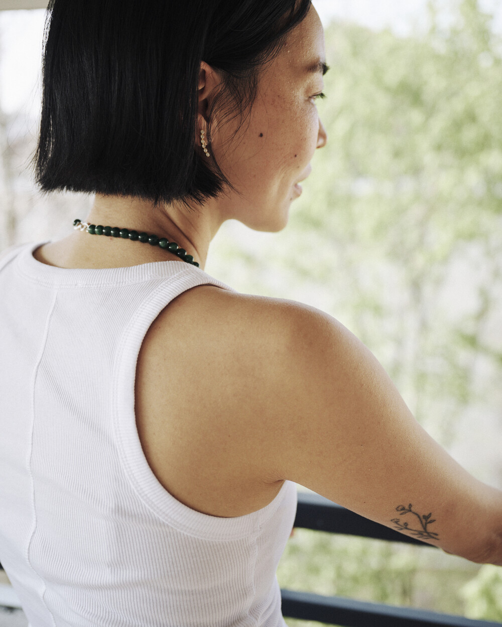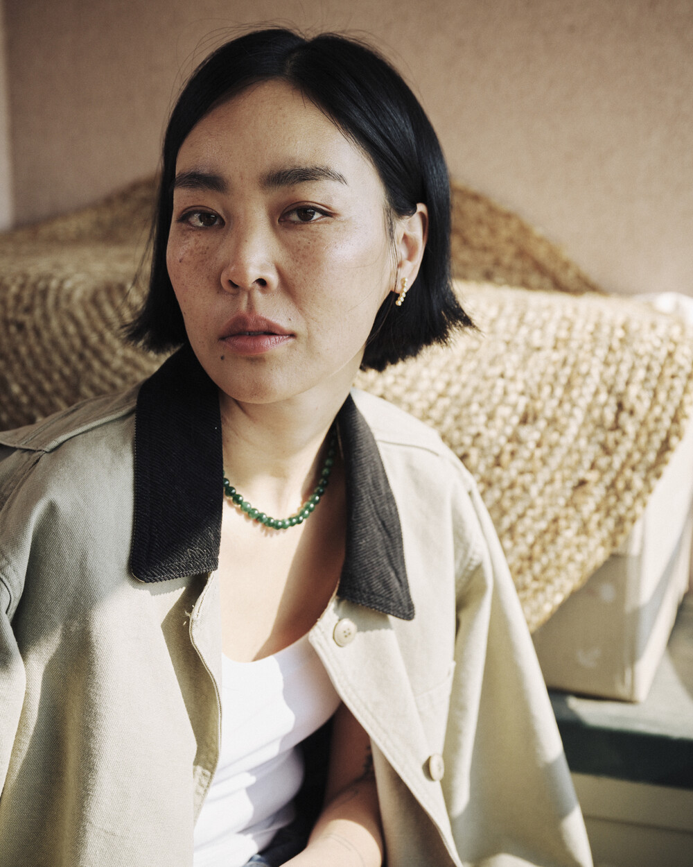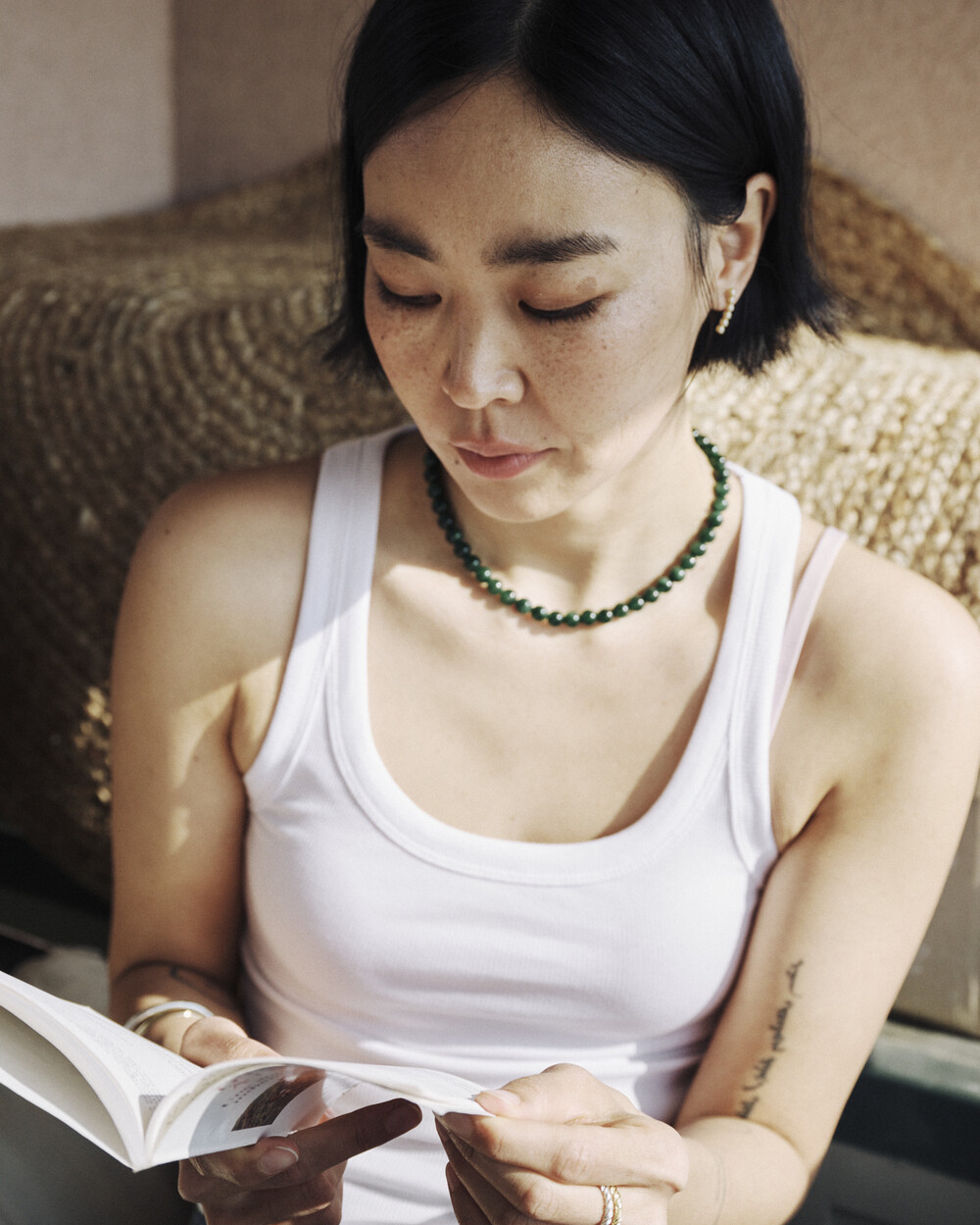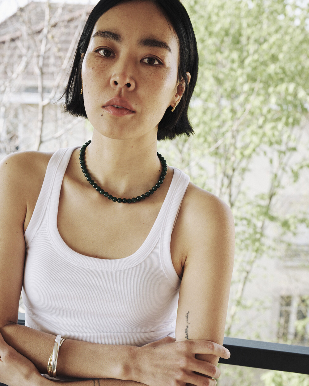 매력적인 그린 톤의 에메랄드가 부드럽게 이어지는 비드 네크리스입니다.