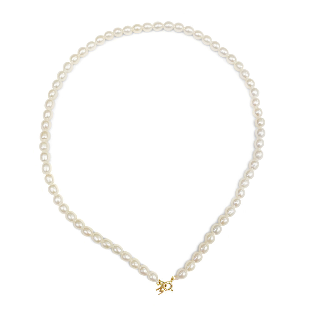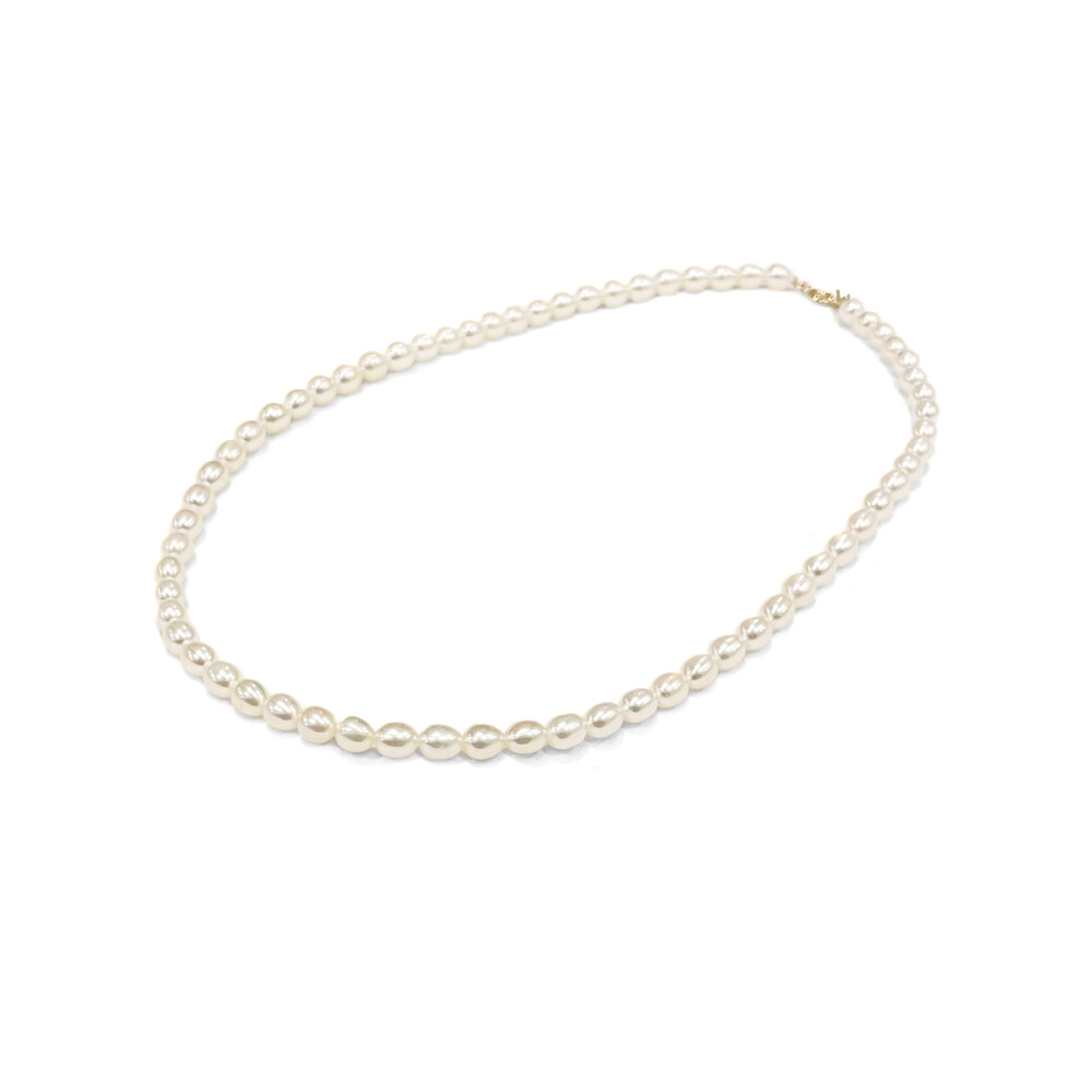물방울을 닮은 5mm 타원형 담수진주가 차분하면서도 고급스러운 광채를 전하는 네크리스입니다.