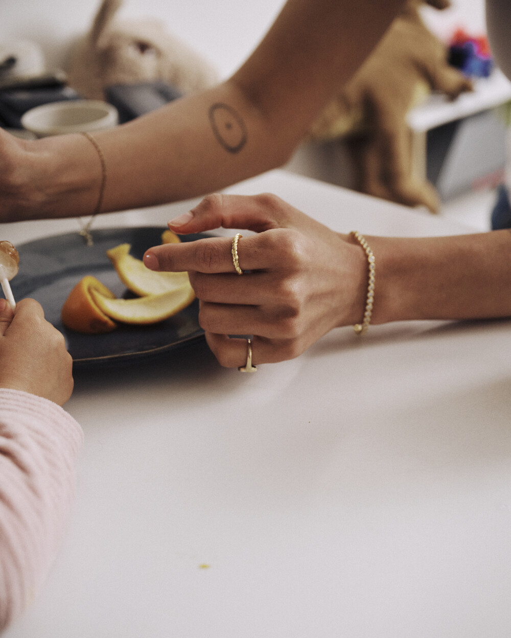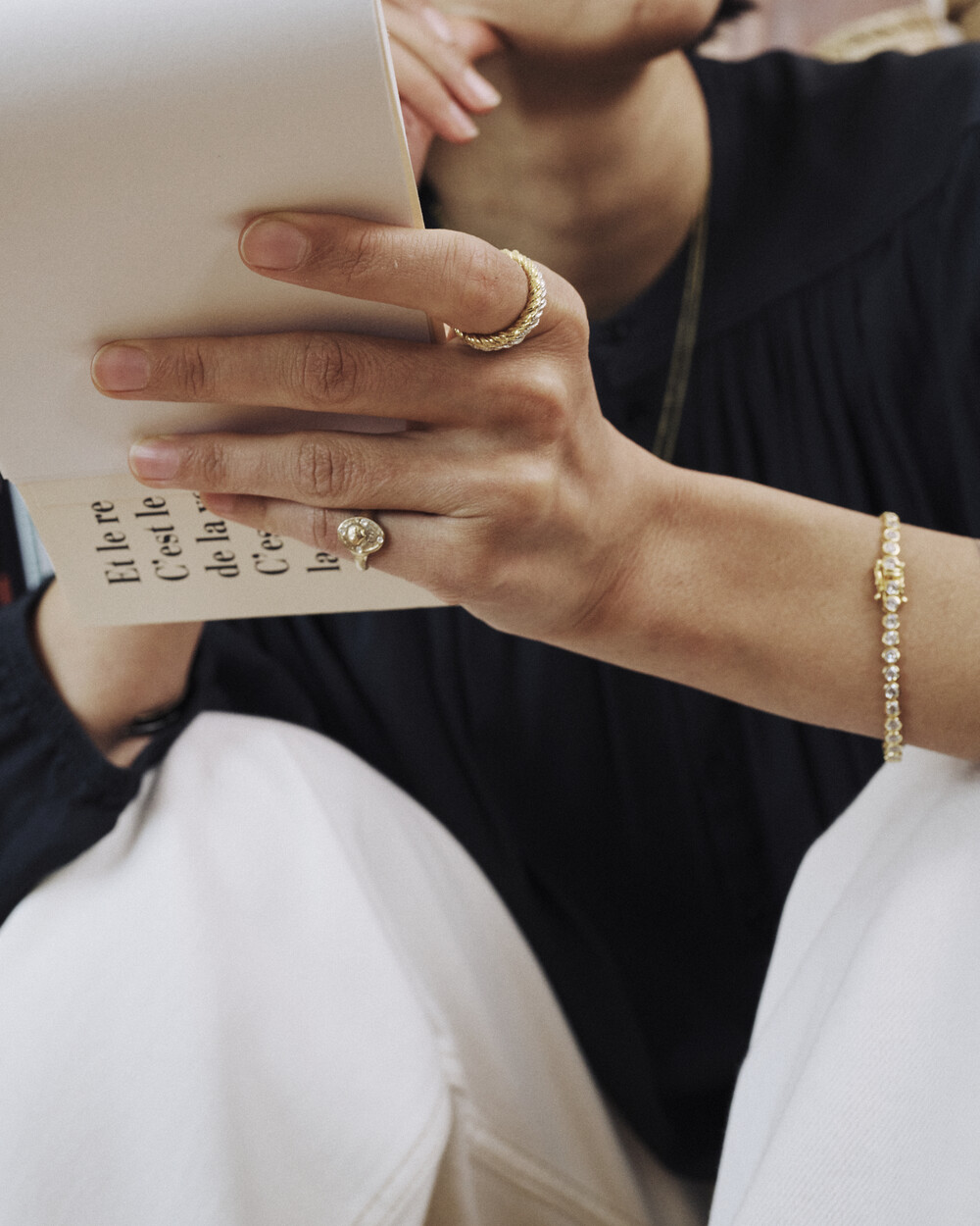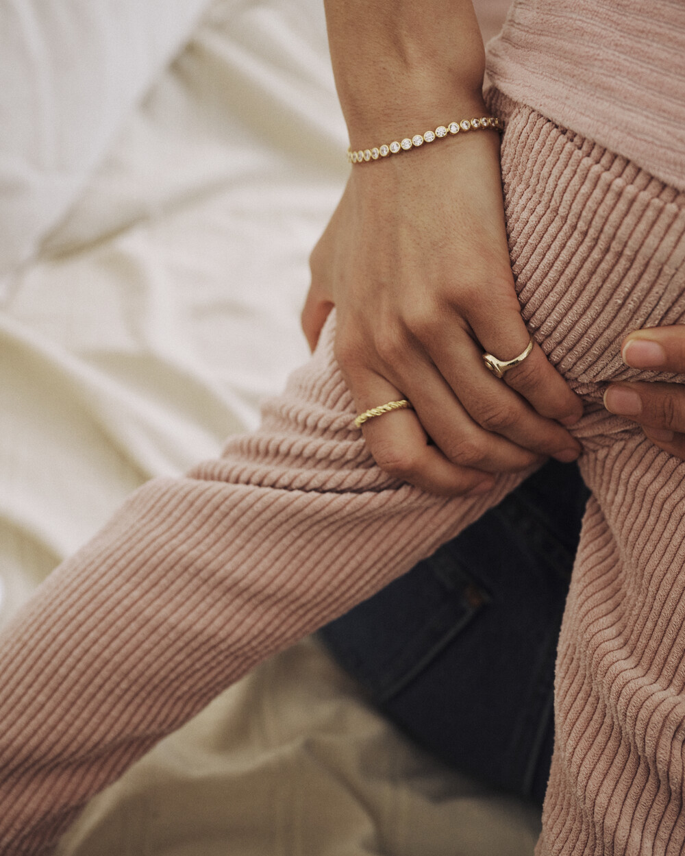 부드럽게 흐르는 라인과 은은한 반짝임이 손목 위의 존재감을 더하며, 단독으로는 클래식하게, 레이어드 시에는 더욱 세련된 무드를 완성합니다.