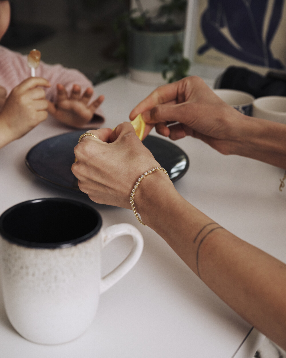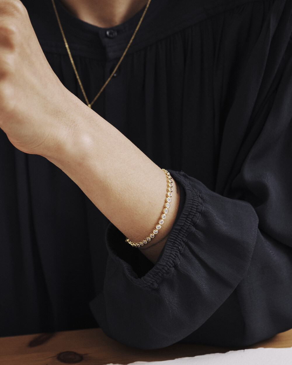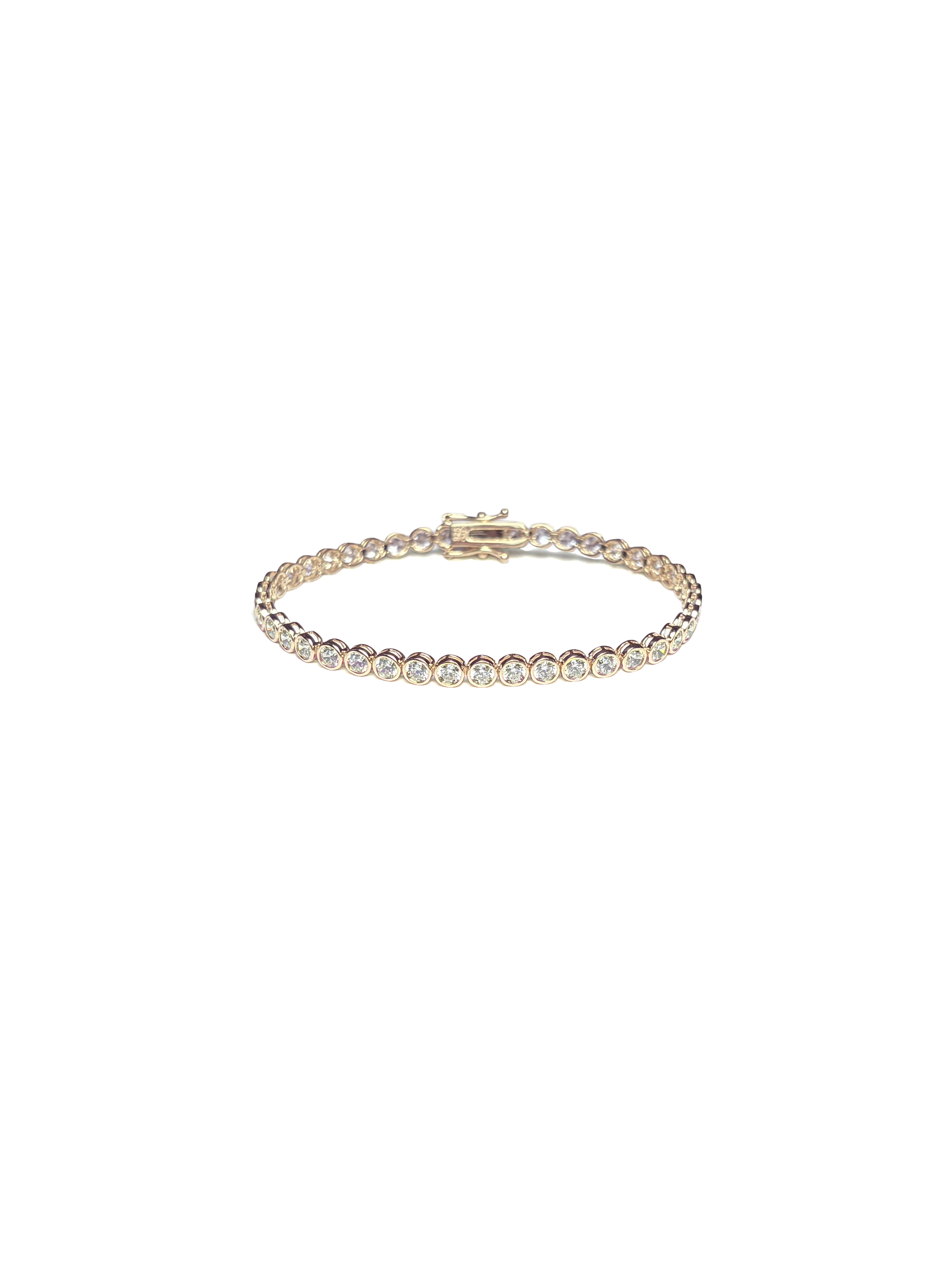 정교한 베즐 세팅의 깔끔한 3mm 테니스 브레이슬릿입니다.
