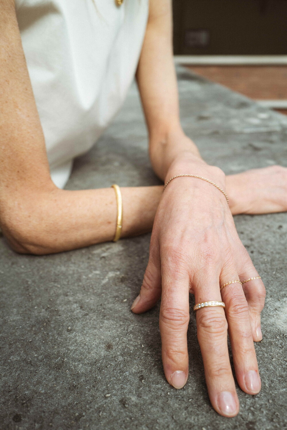 360도 전체가 눈부신 아침 햇살처럼 아름답게 빛나는 링입니다. 단독 착용 또는 여러 개 함께 착용으로 새로운 연출이 가능한 것이 특징입니다.