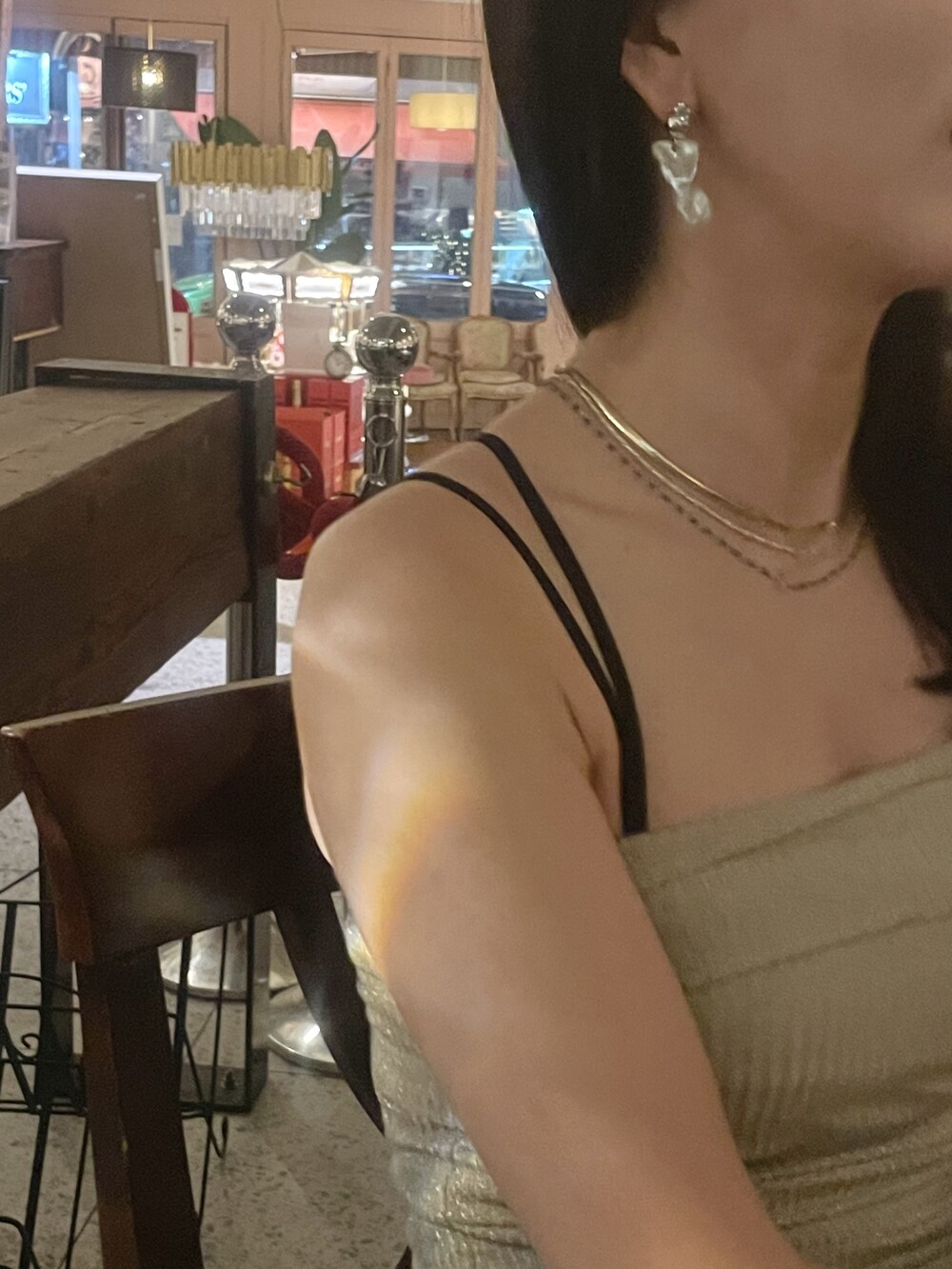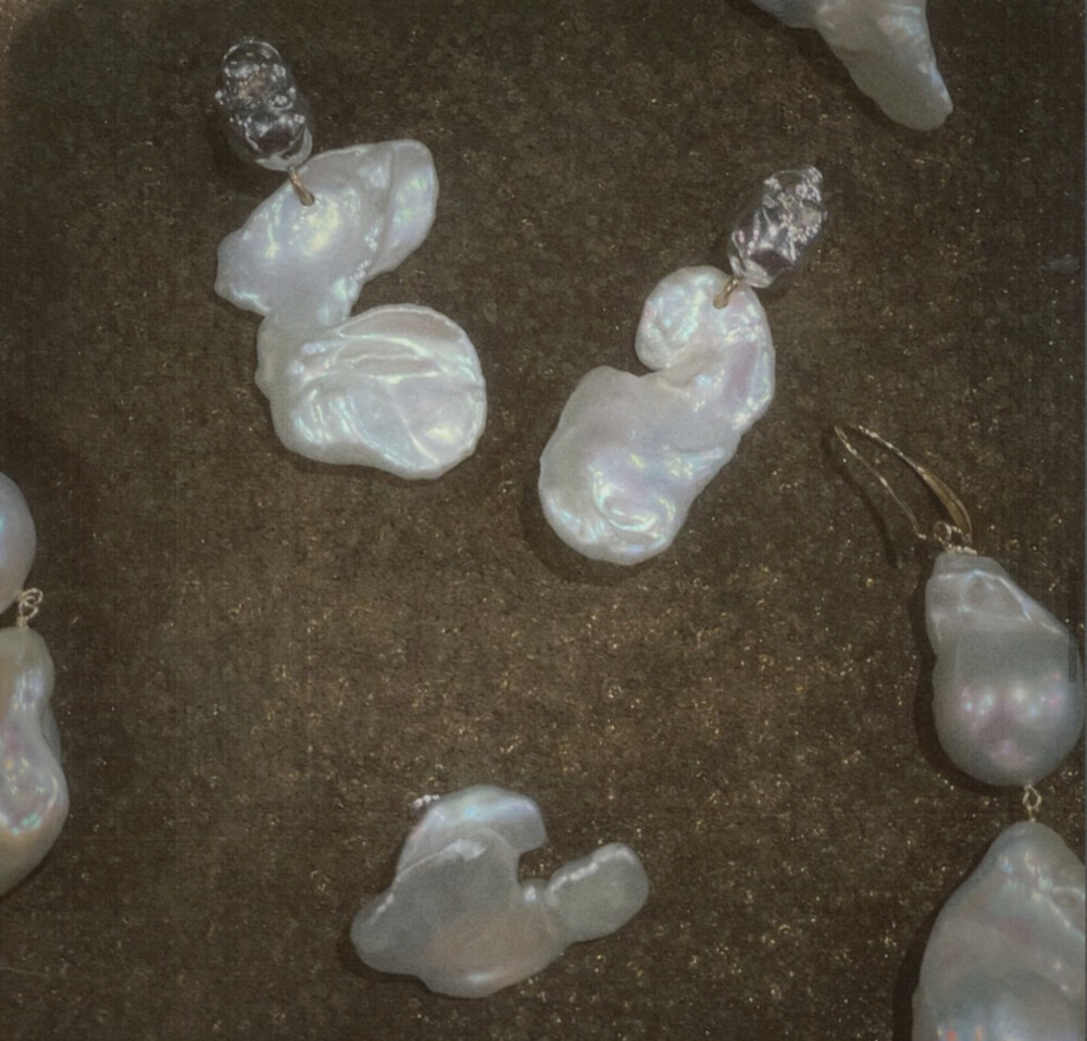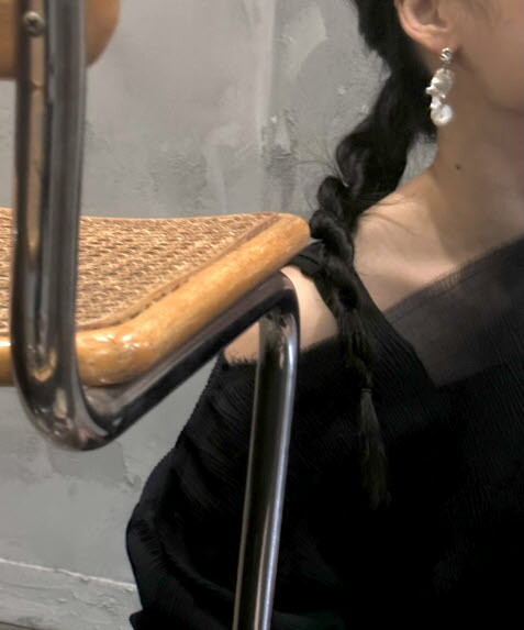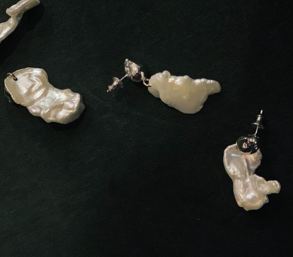 위쪽에 동그란 진주모양에 아래쪽엔 비정형적인 바로크 담수진주가 드롭되어 있는 모양입니다.