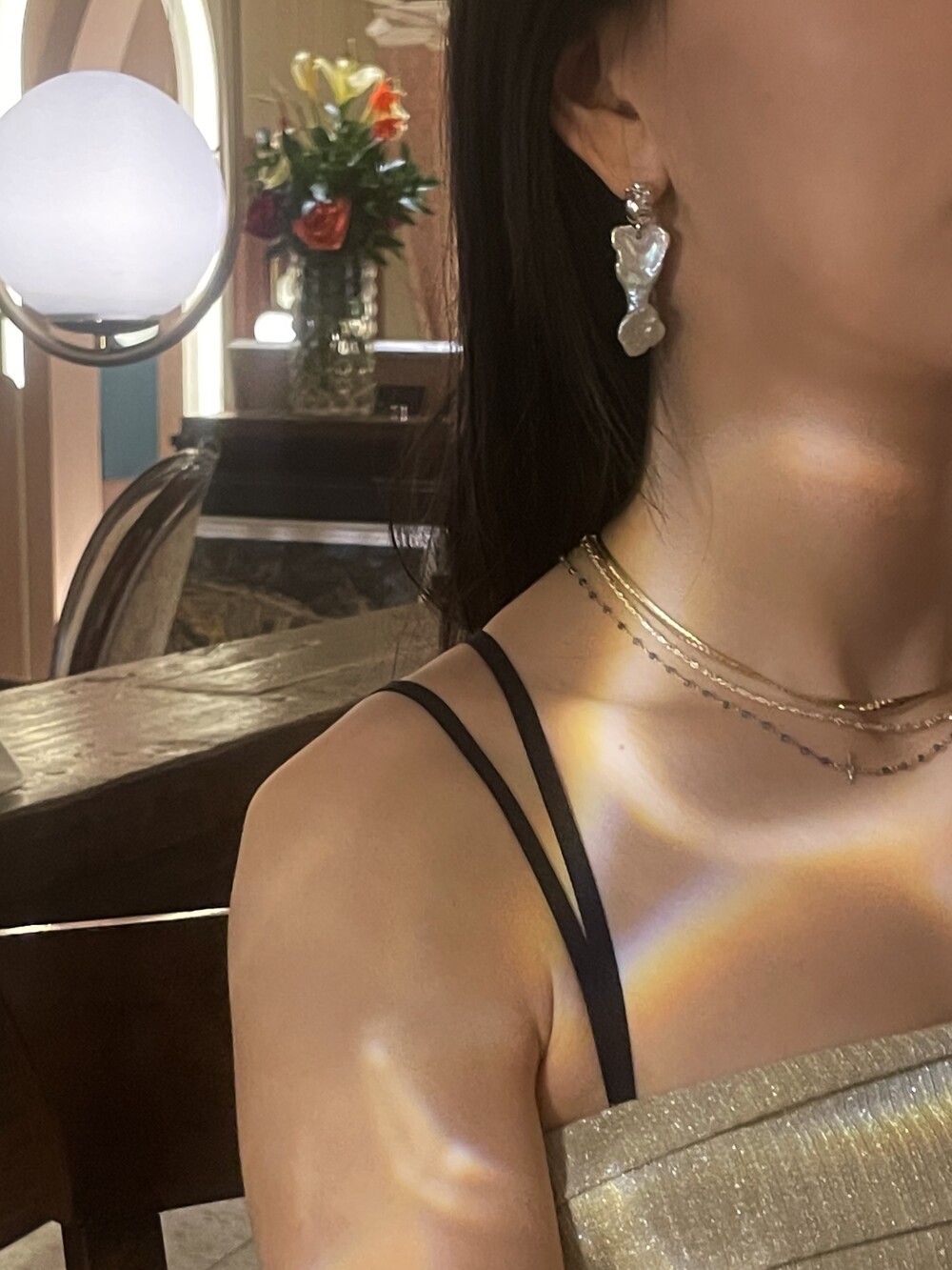 귀에 착용하였을때 환해 보이면서도 못난이 모양이 자연스러워서 더욱 매력적인 이어링입니다.
