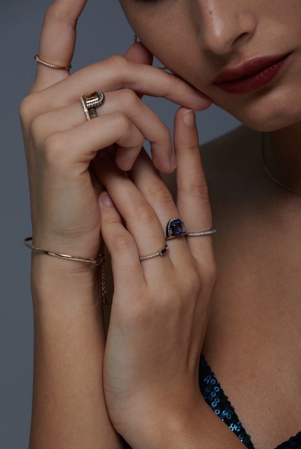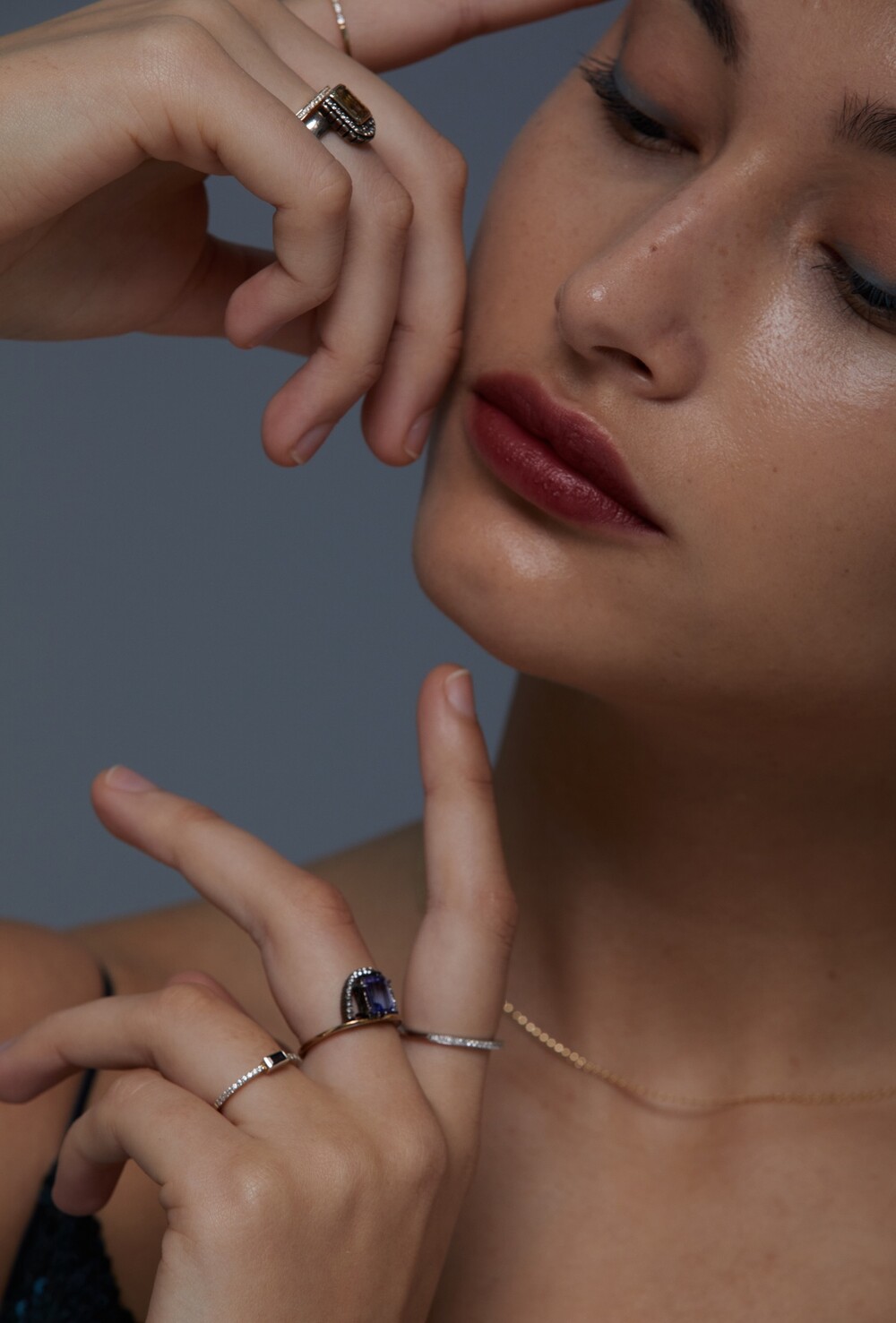 블루와 화이트 사파이어는 좀더 피부톤을 화사하게 보여질 수 있는 컬러대비가 있고 화이트로 전체가 세팅된 링은 좀 더 은은하게 착용하기 좋습니다.